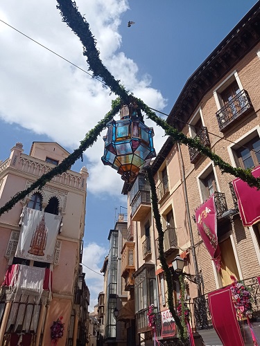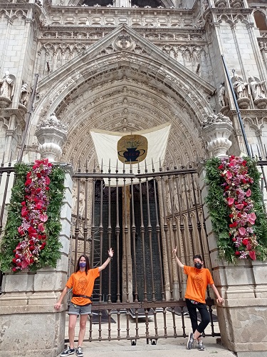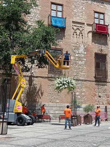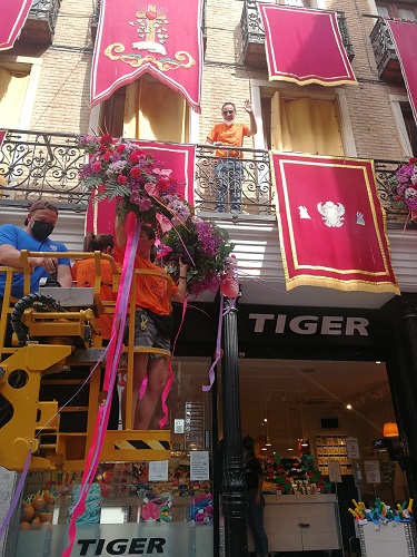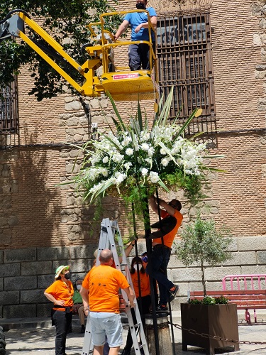 La ausencia de procesión de este año no impidió que Toledo luciera su aspecto más vistoso. Así, cargados de ilusión (¡y flores!), acudimos a la capital regional para engalar calles, balcones y fachadas del casco antiguo. Si bien fue un trabajo a menor escala que en años anteriores, las zonas más emblemáticas de la localidad quedaron completamente adornadas para la ocasión. ¡Empleamos miles de flores en el evento!
